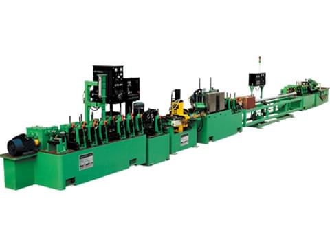 經(jīng)開卷、清洗裝置、進(jìn)料導(dǎo)向、成型、焊接、內(nèi)焊整平、外焊縫打磨、定徑、固熔處理、終定徑、校直、探傷、噴碼、定尺、切斷(盤卷)、接料等連續(xù)成型工藝、結(jié)構(gòu)明確、操作簡便。