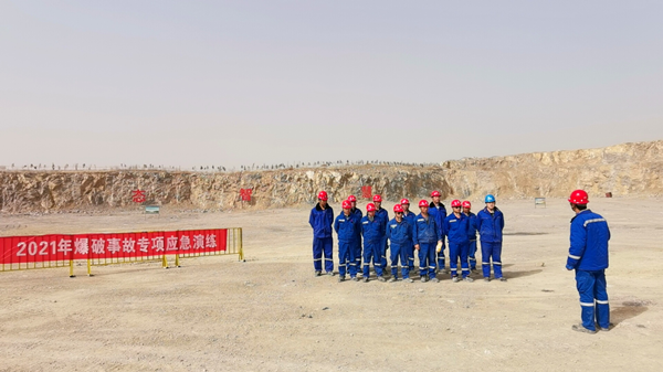 3月16日,泗水分公司為檢驗員工在礦山開采爆破作業過程中的組織程序執行情況,以及應變突變事故的處理能力開展了“2021年爆破事故專項應急演練――爆破飛石傷人演練”。