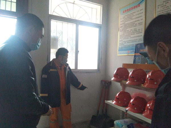 2020312午,根據萬年縣疫期防控需要,萬年縣應急管理局領導中材礦山萬年分公司施工現場及辦公室進行檢查主要檢查了分公司疫情防控相關措施及汛期防護設施物資。