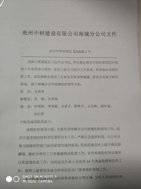 南城分公司成立疫情防控小組