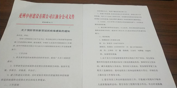 江油分公司成立疫情防控小組