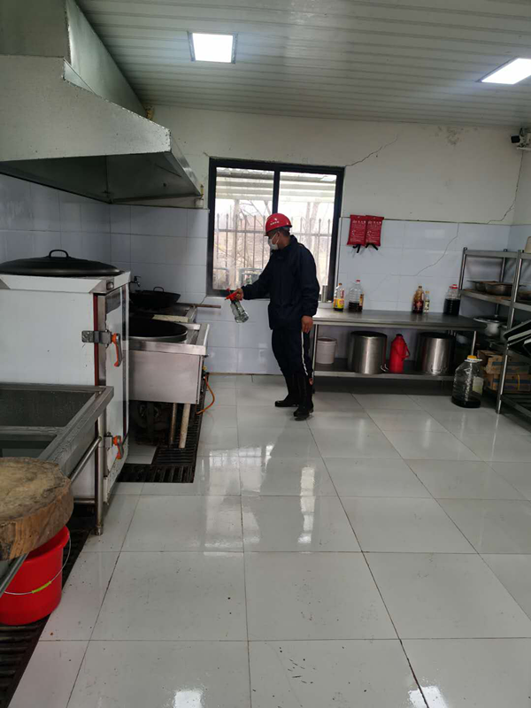 三、組織人員統一對辦公場所、樓道、廁所等區域進行消毒處理。食堂推行分餐制,避免聚集就餐,加強對餐具的消毒及管理。