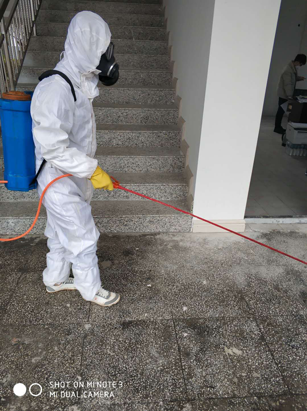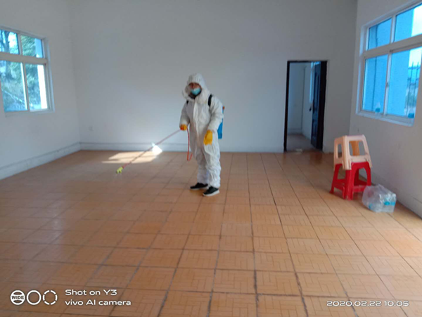 分公司組織專人每日對生活區辦公室、餐廳、衛生間等場所每日消毒兩次,要求員工做好自我防護,勤消毒勤洗手,共同打造抗擊疫情的良好環境。