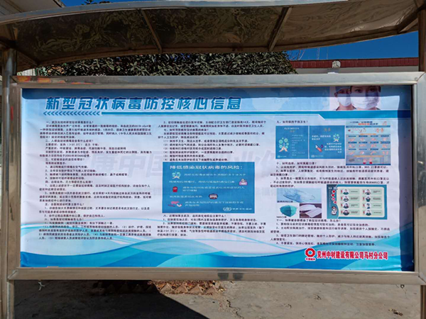 突如其來的災難讓本該舉國同慶的春節(jié)變的人心惶惶。為打好這場保衛(wèi)全國人民的硬仗,2020年1月25日前后,全國30多個省啟動重大突發(fā)公共衛(wèi)生事件一級響應,實行最嚴格的科學防控措施。同時各地方政府也出臺相應的防控的舉措。 為有效控制疫情的傳播,針對疫情期間的各項工作安排,兗州中材馬村分公司于2020年1月29日成立應對疫情工作領導小組。根據省委、省政府及公司關于做好疫情防控的重大決策部署,全面落實分公司的相關工作要求,負責與分公司上級及地方、千業(yè)水泥疫情工作的聯(lián)系,協(xié)調好疫情期間的人員以及各項工作安排。 假期期間,通過網絡通訊設備進行安全防疫宣傳教育。  通過宣傳欄、條幅等向員工傳達疫情防控知識,提高疫情防控意識。   通過有效途徑采集各類防疫物資,主要包括醫(yī)用酒精、84消毒液、一次性口罩、便攜式噴霧瓶以及測溫儀等。    通過對辦公室、走廊、宿舍以及衛(wèi)生間等公共場所以及公共設備設施進行消毒,早晚各一次。  分公司門口設置崗哨,無關人員禁止出入;對相關人員進行信息登記,對進出人員進行測體溫并登記,無異常才允許進入,如發(fā)現異常及時上報處理。  公司員工每天測量體溫,匯報身體狀況;對于外地返崗人員,按照相關規(guī)定進行相應的隔離,隔離期間每天3次匯報體溫,并接受地方政府及先關人員的監(jiān)督,確保萬無一失。
