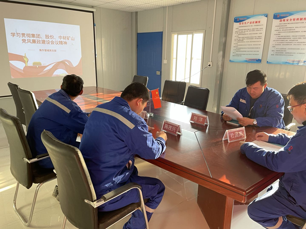 2021年4月9日,焦作晉城黨支部召開全體黨員大會(huì),集中學(xué)習(xí)貫徹落實(shí)2021年中國(guó)建材集團(tuán)、中國(guó)建材股份、中材礦山黨風(fēng)廉政建設(shè)會(huì)議材料,會(huì)議由支部書記杜國(guó)賓支持,支部全體黨員參加