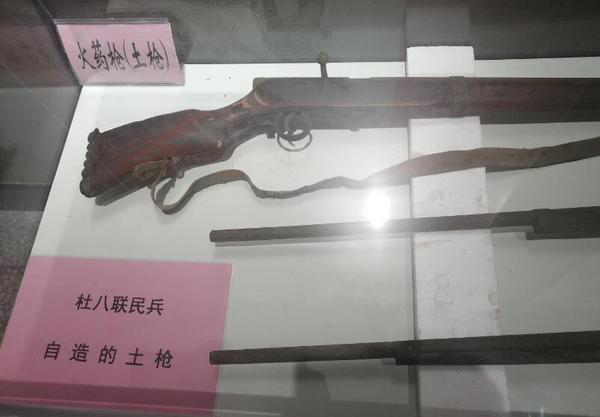 在杜八聯(lián)革命紀念館內(nèi),長矛、土槍、葫蘆舟等一件件實物勾畫著戰(zhàn)爭年代的硝煙烽火,閃耀著英雄們?yōu)槊褡濯毩⒑腿嗣窠夥攀聵I(yè)艱苦奮斗不屈不撓的革命精神